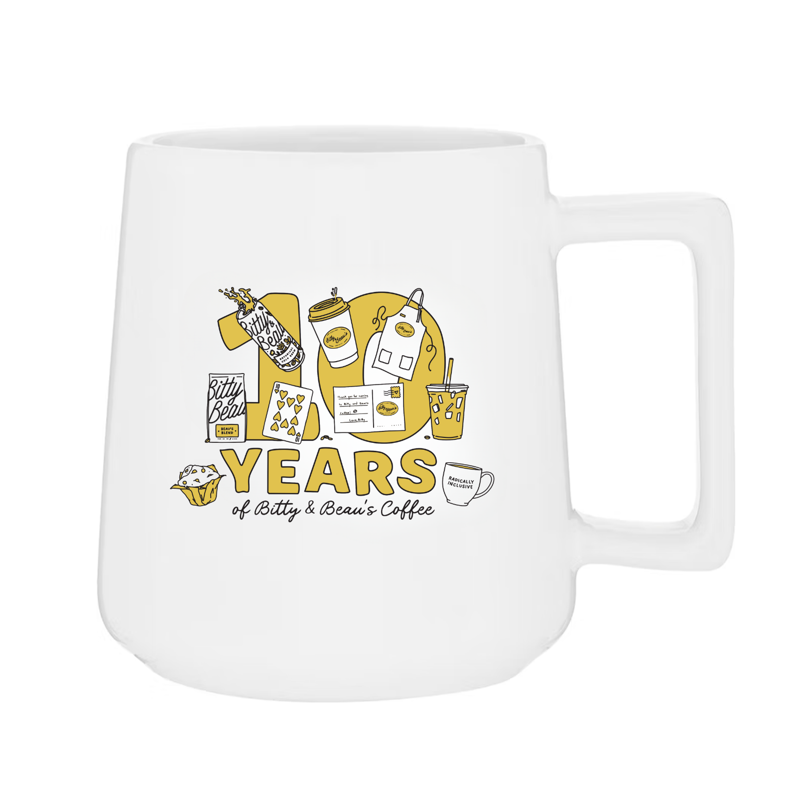 Ten years ago, Bitty & Beau’s Coffee set out to change the way people see other people. Celebrate that journey with our exclusive 17oz 10 Year Mug—commemorating a decade of purpose, inclusion, and community.